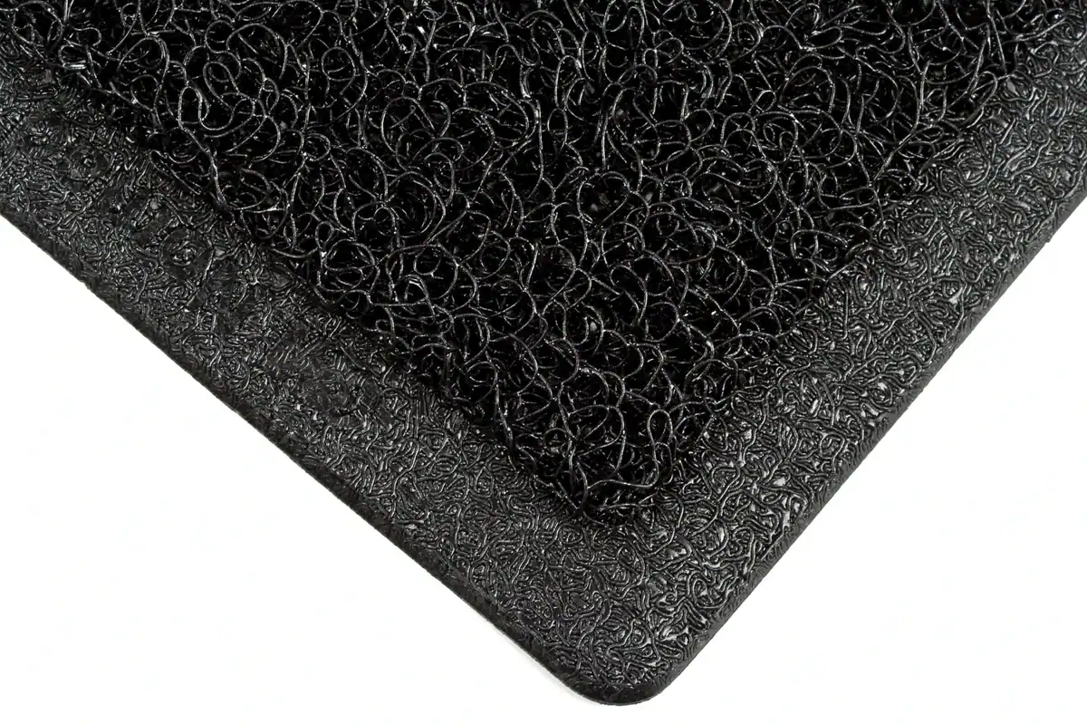 - Material: Non-woven continuous vinyl filaments bonded together to form an open walking surface with a vinyl foam backing.