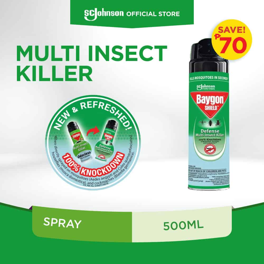 Baygon Multi Insect Killer Odorless Spray Aerosol is formulated to provide fast killing power against flying and crawling insects found in and around the house. Cockroaches, mosquitoes, and flies are dead in seconds.