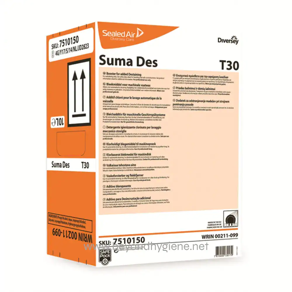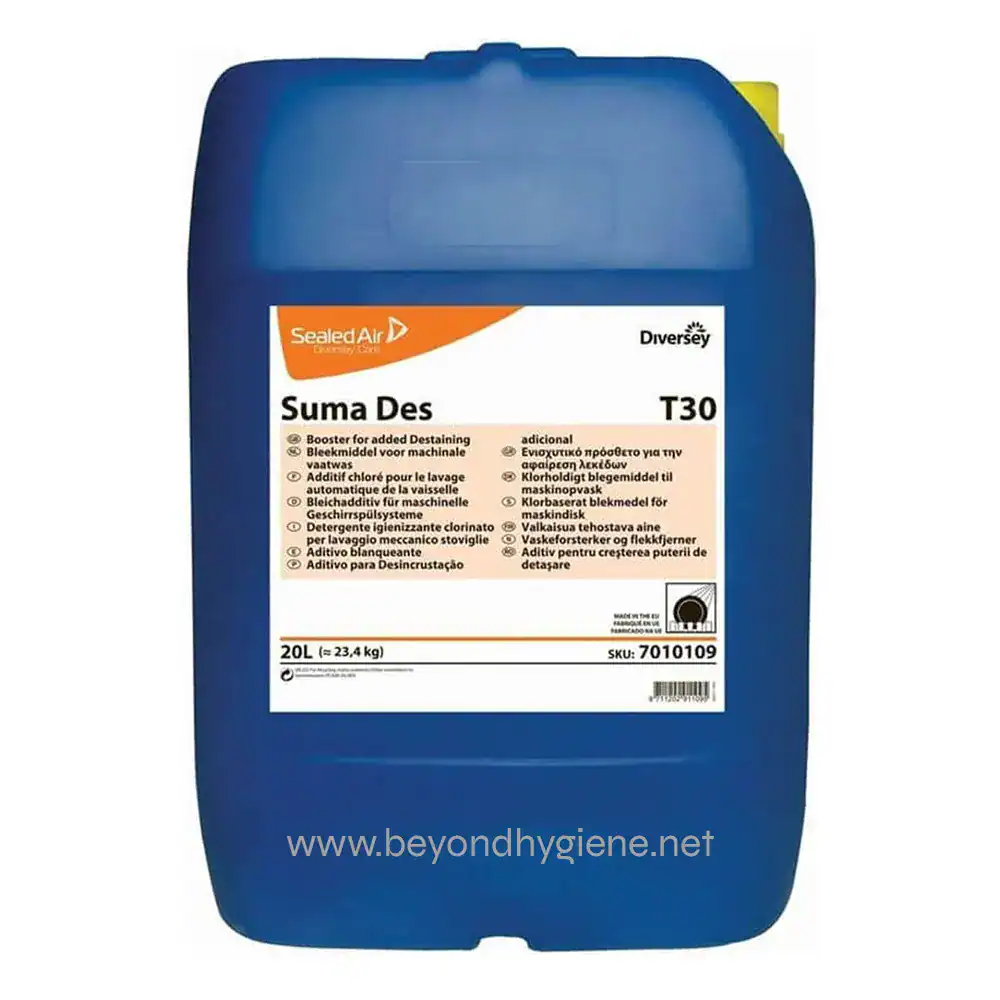 Suma Des T30 is a powerful, highly concentrated ware washing destainer designed to provide excellent stain removal in mechanical ware washing systems. This product is particularly effective in combination with Diversey Care detergents.