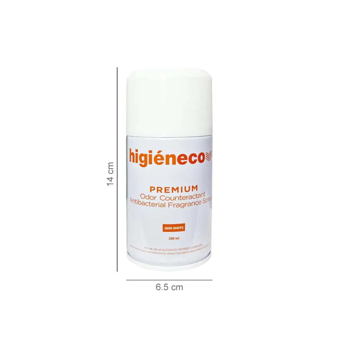 - As a Refill: If using with an aerosol dispenser, simply place the Higieneco Air Freshener Refill inside the dispenser and follow the manufacturer’s instructions. The LED sensor or programmable feature will automatically release the spray at the designated times.