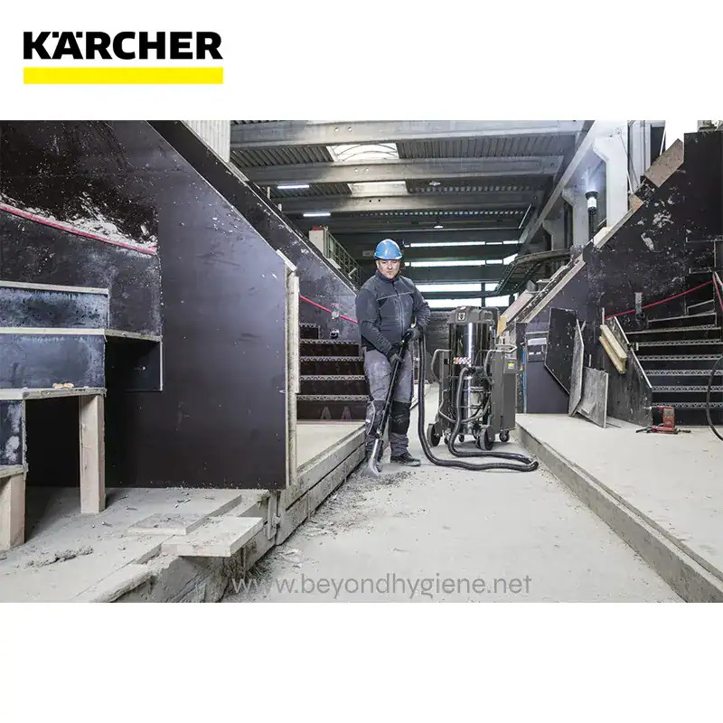 The entry-level model in our super-class industrial vacuum range with dust class M certification is already making its mark with impressive performance values and excellent equipment. The IVS 100/40 M has an efficient three-phase motor (IE2) with soft start-up in order to prevent peaks in power when starting the machine along with a powerful 4.0 kW side channel blower. The large star filter reliably picks up fine dusts that are hazardous to health, while the horizontal filter shaker means that cleaning the filter system couldn’t be easier for the user. This is ensured by the integrated gearbox for targeted power transmission. How much or how little force is applied by the user therefore has no influence on the cleaning results. Another benefit is the many options for storing accessories. As a result, these are stored safely during the working day and when the machine is being transported. The IVS 100/40 M is designed for continuous operation, which is clearly demonstrated by a 100-litre stainless steel container with convenient set-down mechanism. An optional remote control supplements its wide range of equipment.