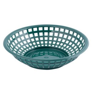 Tablecraft Plastic Round Basket 8×2″, Green (Stock No. 1075FG) is an essential serving solution for various culinary delights. Measuring 8 inches in length, 8 inches in width, and 2 inches in height, this classic plastic basket is perfect for serving bread, appetizers, snacks, or any side dish.