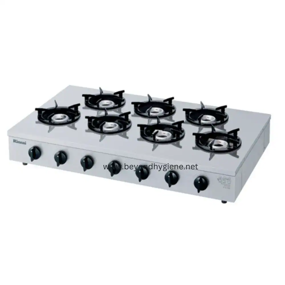 The Rinnai Commercial 7-Burner Gas Stove is a high-performance, multi-burner cooking solution designed for restaurants, cafeterias, catering services, and large-scale kitchens. Built with a durable stainless steel body, this gas stove ensures long-lasting durability, corrosion resistance, and easy maintenance, making it ideal for high-demand cooking environments.