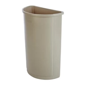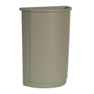 The Rubbermaid Half Round Container 21 Gal., Beige, offers an elegant and functional waste collection solution suitable for both indoor and outdoor use. Its durable construction ensures it remains crack-resistant even under tough conditions, making it an ideal choice for various environments.