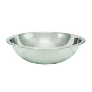 Tablecraft Stainless Steel Mixing Bowl (Stock No. 826) is an indispensable kitchen tool designed for blending, mixing, whipping, and prepping ingredients effortlessly. With a generous 5 qt. capacity, this mixing bowl is ideal for various culinary tasks, from preparing cake batter to creating signature toppings and sauces.
