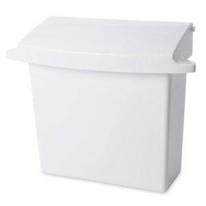 The Rubbermaid® Sanitary Napkin Receptacle with Rigid Liner in white is designed for efficient waste management in restrooms. With dimensions of 10.75″L x 5.25″W x 12.5″H, this receptacle features a wall-mounted design that saves space and makes servicing easy.