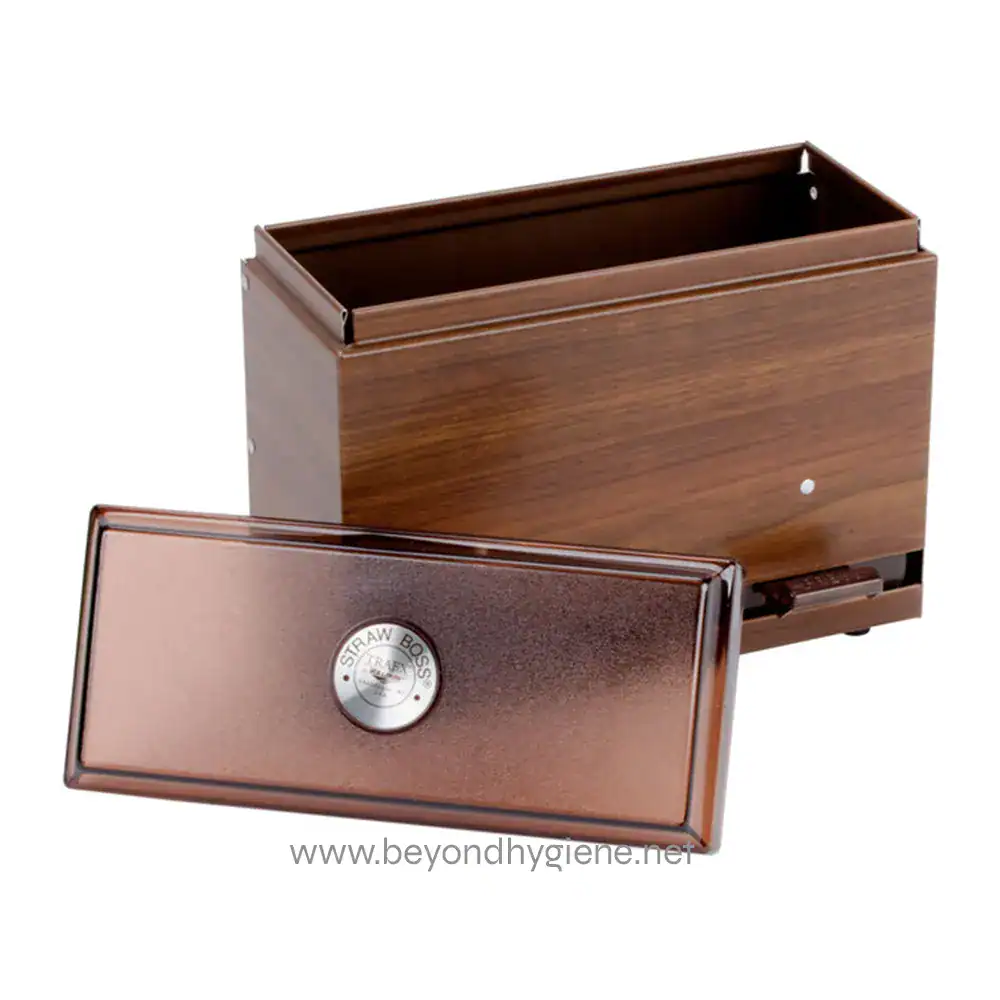 Vollrath 3835-12 Straw Boss Single Sided Bulk Unwrapped Straw Dispenser – Dark Walnut Woodgrain
